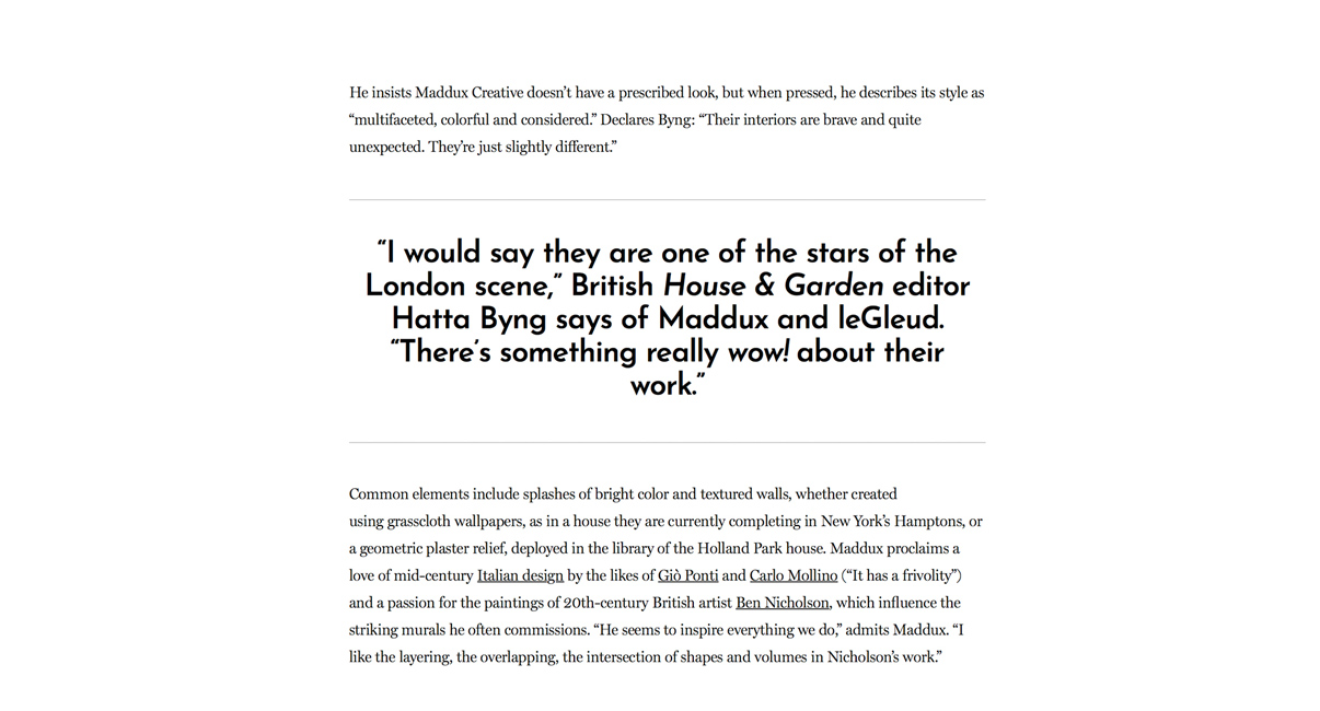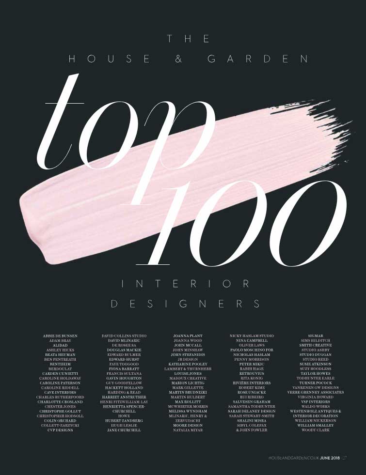 House & Garden, Top 100 Interior Designers, June 2018.