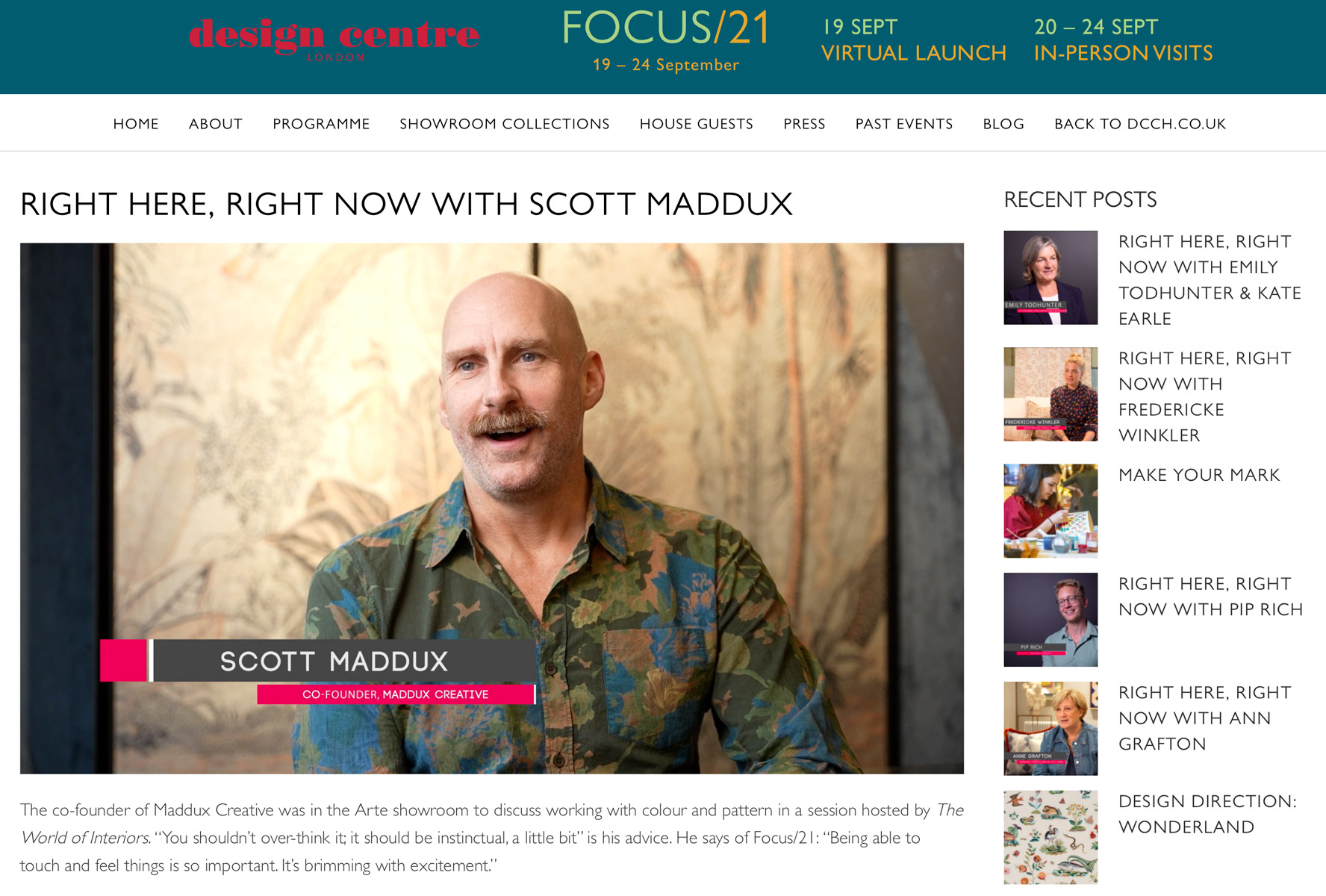 Focus/21 at Design Centre, Chelsea Harbour, September 2021 – Click here to watch the video.