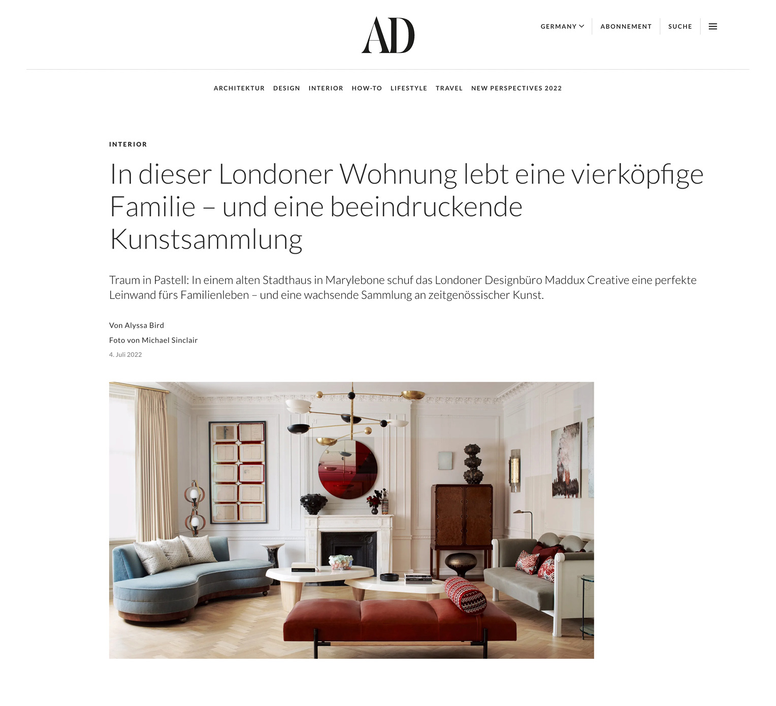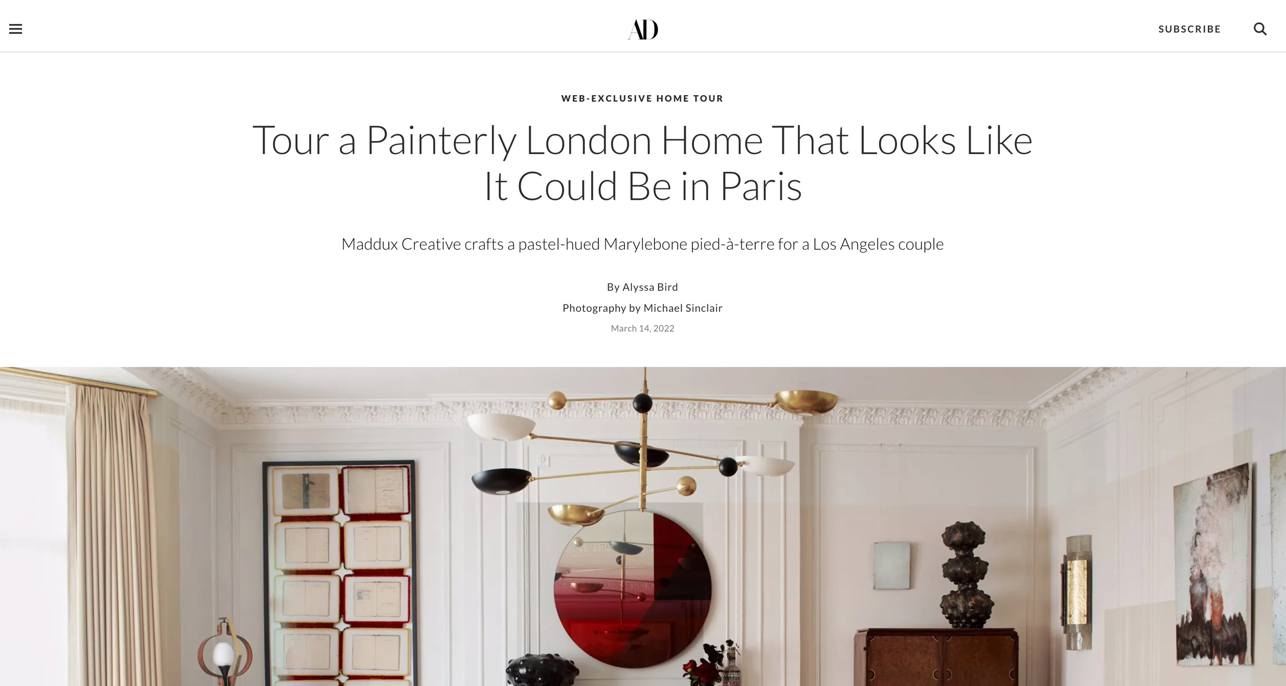 Architectural Digest US, Marylebone Pied-à-Terre, March 2022.