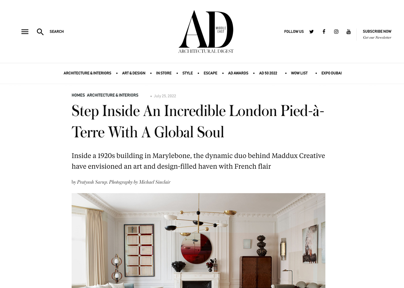 Architectural Digest Middle East, Marylebone Pied-à-Terre, July 2022.
