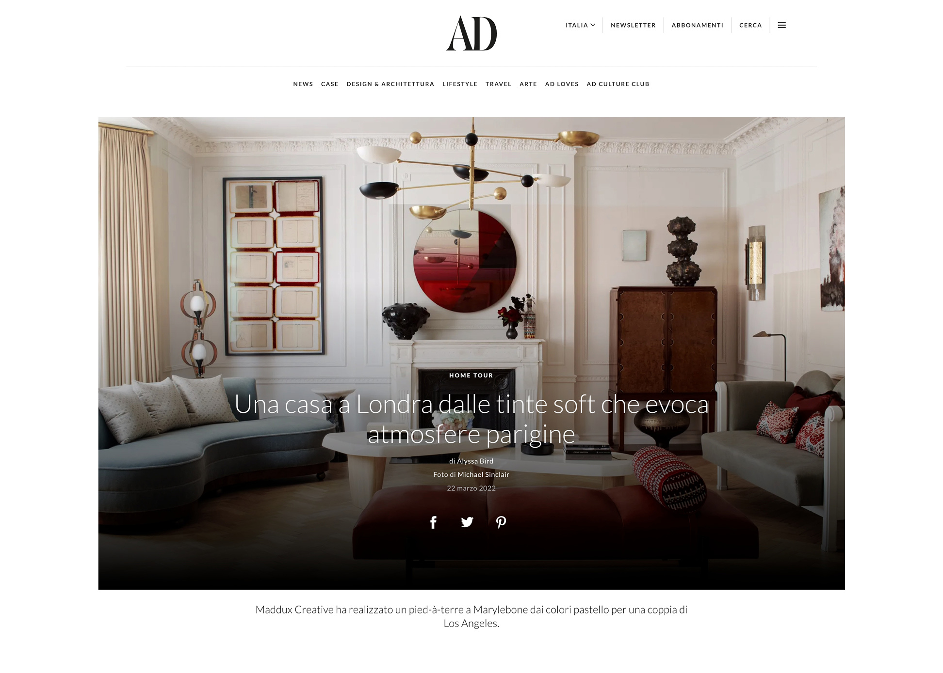 Architectural Digest Italy, March 2022.