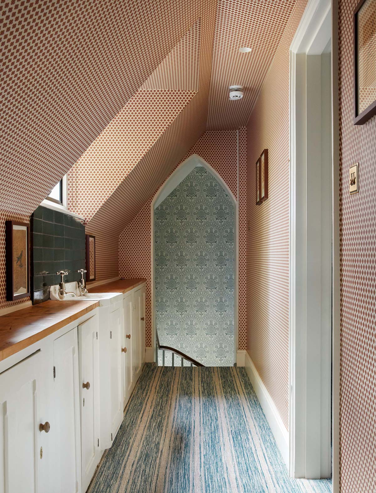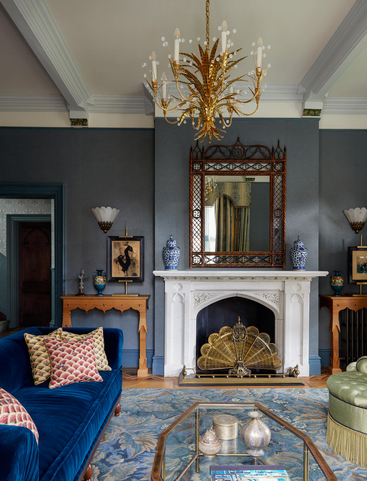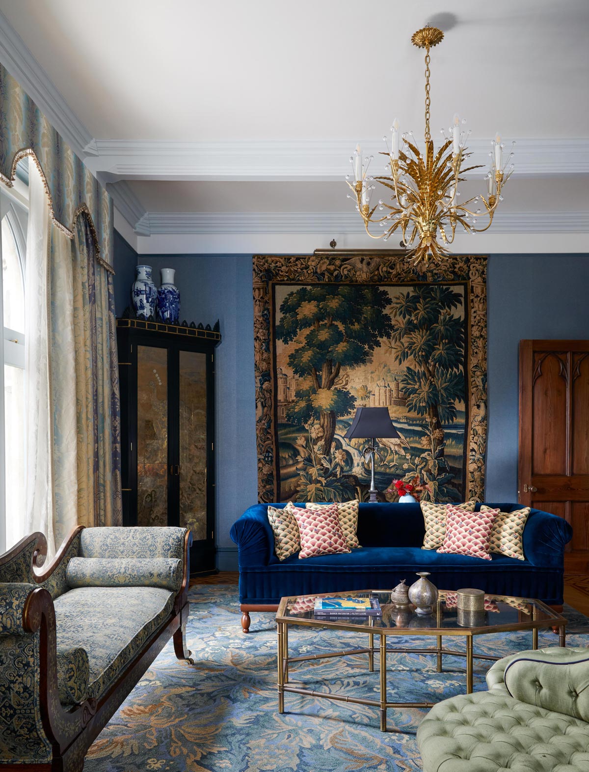 From the extraordinary gothic exterior to the unexpected interplay of light, colour, and rich materiality in the interior, this project demonstrates the unique approach and vision of the studio. A full restoration, decoration and furnishing project stands testament to the relationship between designers, client and restorer. With a focus on creating an environment that reflected the interests and tastes of the client, with inspirations from their studies, travels and collections, this project at its core is a home with memories at its heart which has resulted in a profoundly poetic space.