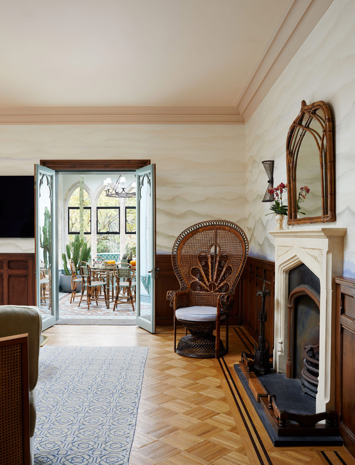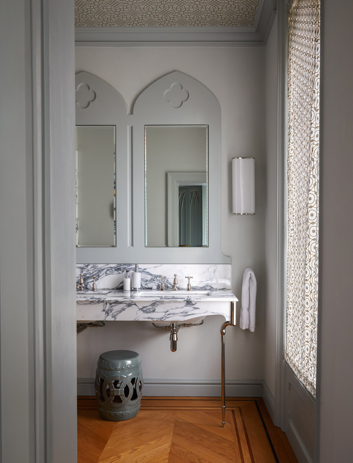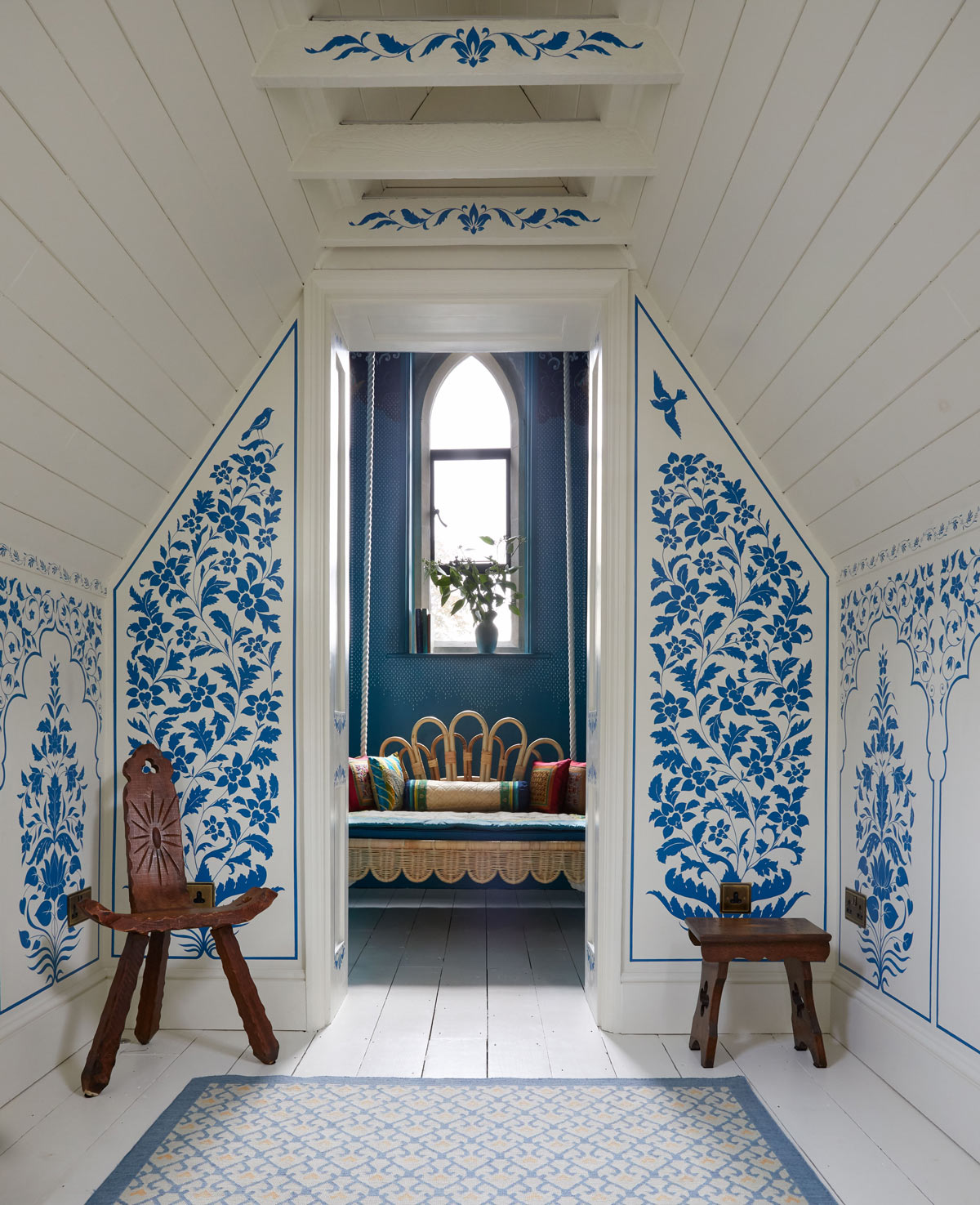 From the extraordinary gothic exterior to the unexpected interplay of light, colour, and rich materiality in the interior, this project demonstrates the unique approach and vision of the studio. A full restoration, decoration and furnishing project stands testament to the relationship between designers, client and restorer. With a focus on creating an environment that reflected the interests and tastes of the client, with inspirations from their studies, travels and collections, this project at its core is a home with memories at its heart which has resulted in a profoundly poetic space.