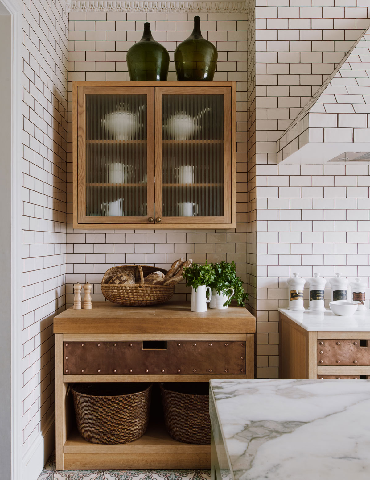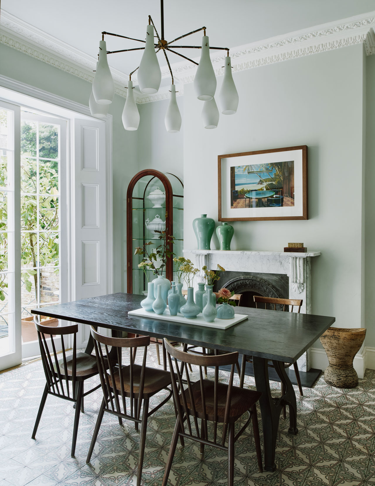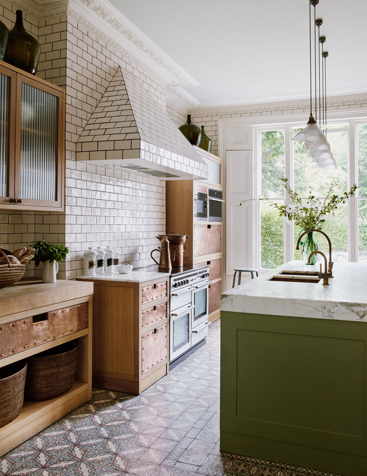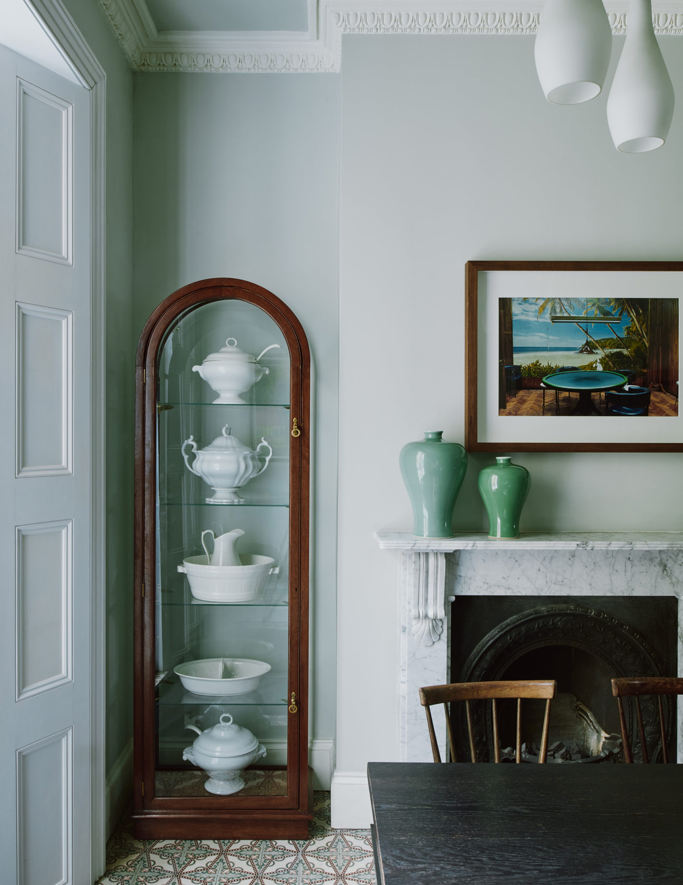 Throughout the entire ground floor, we created a floor design using different patterns of encaustic tiles sourced from a reclamation yard in the Netherlands. The thresholds between spaces and patterns required focus and thought: the result is relaxed and charming.