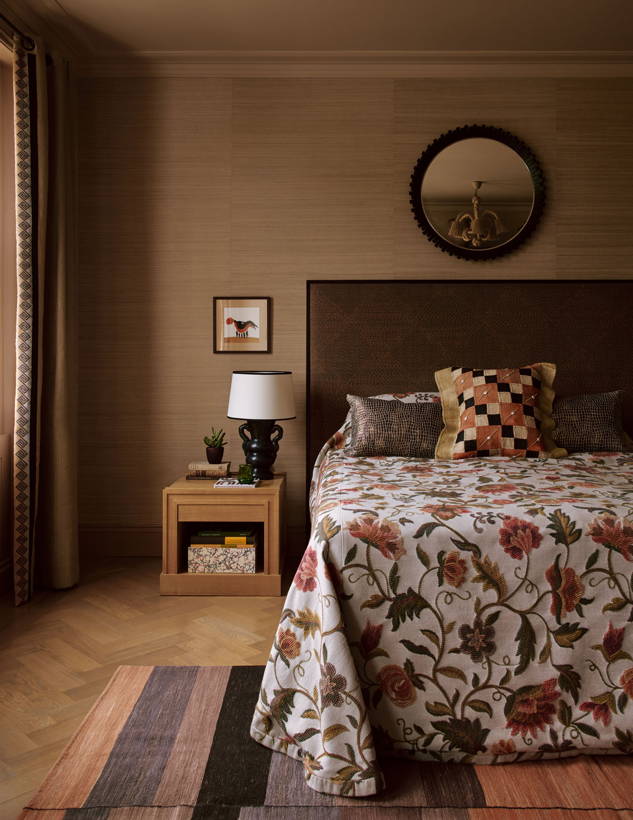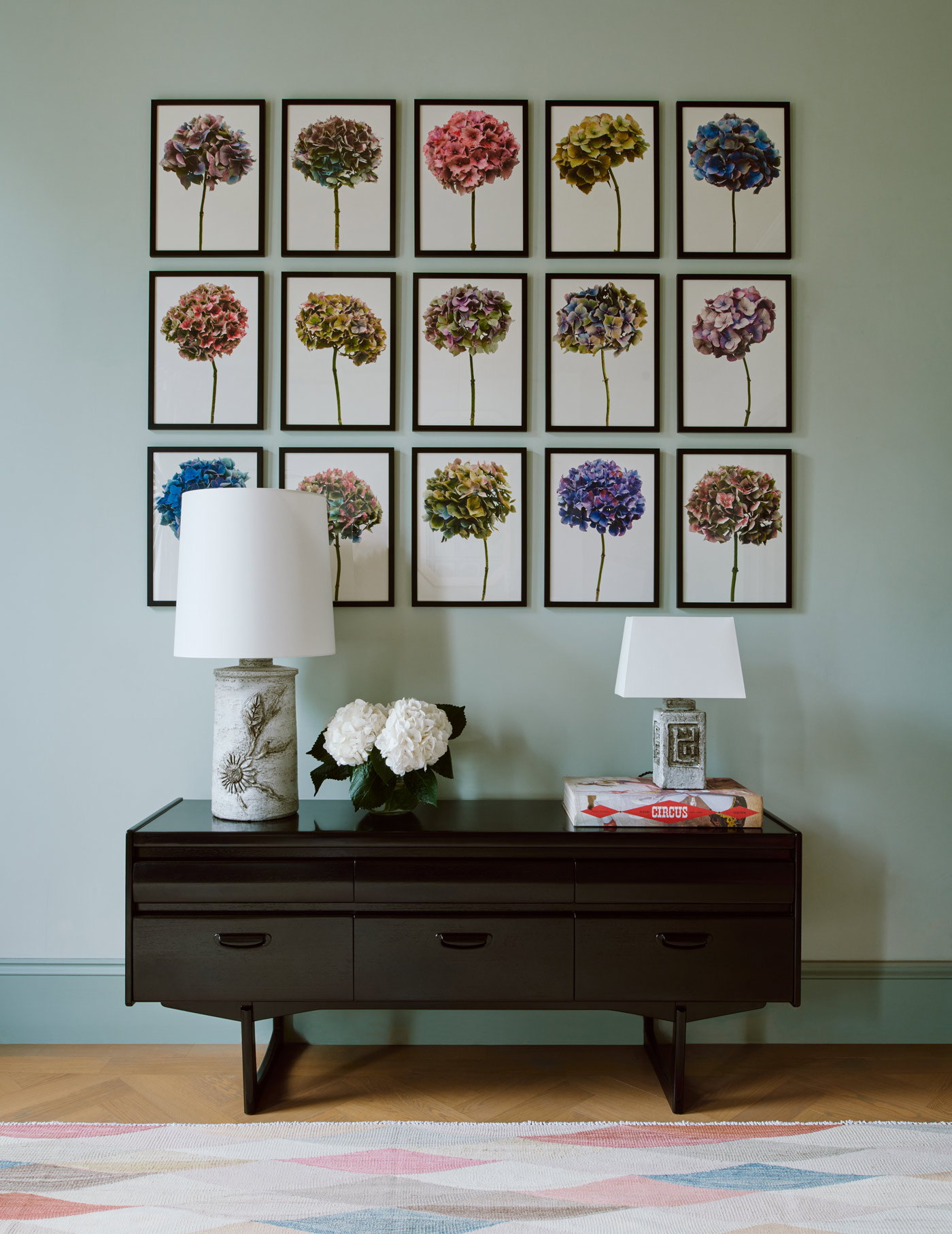 Throughout the scheme, there are many examples of repurposing like this, where pieces have been reupholstered to give a new accent, or fresh combinations were created. While this steered many of the design decisions, it is not the defining characteristic – if anything, it is the emphasis placed on pattern and colour, and the interesting and unexpected use of textures which makes this interior so unique.
